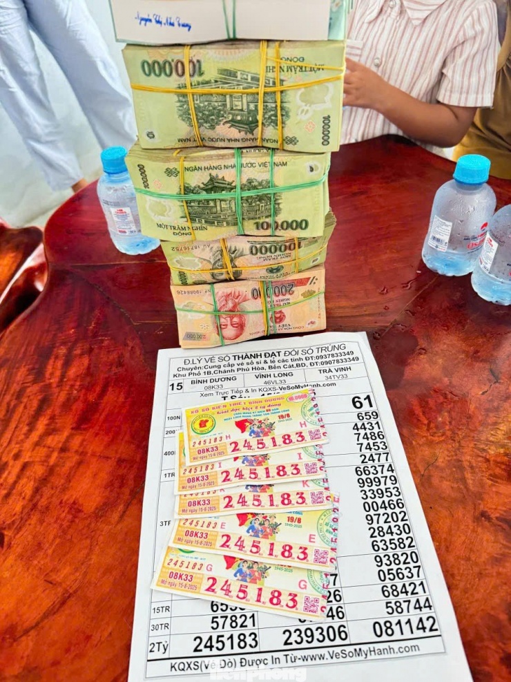 5 tờ vé số giải đặc biệt, sau khi trừ thuế và chi phí khác, đại lý chi trả gần 9 tỷ đồng, trong đó 1 tỷ đồng tiền mặt, còn lại là chuyển khoản.